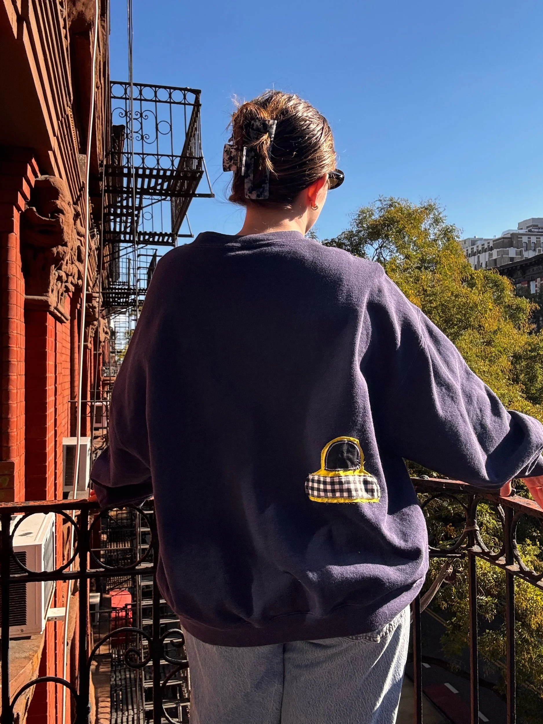 Image 1 of 3 Image 2 of 3 Image 3 of 3 NYC sweatshirt $80.00 sold out Navy blue sweatshirt size XLpatchwork metro card, apple, and taxi cab!!Handmade patchwork and sewing production Sold Out Added! Navy blue sweatshirt size XLpatchwork metro card, apple, and taxi cab!!Handmade patchwork and sewing production